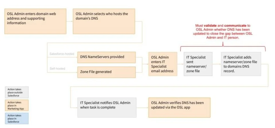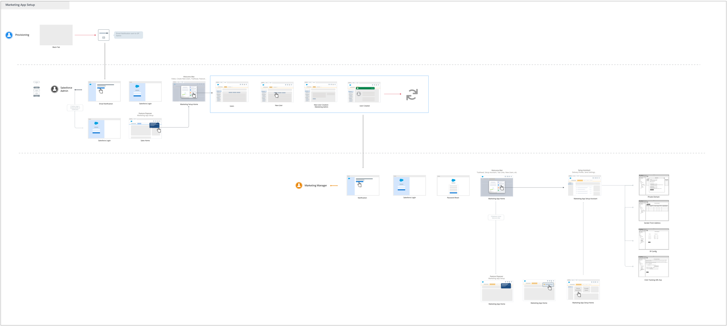 The user flows helped guide end to end flow for Private Domains. Additionally, this was crucial to identifying potential areas of risk due to communication breakdowns, persona handoffs, and in what application each task was occurring.