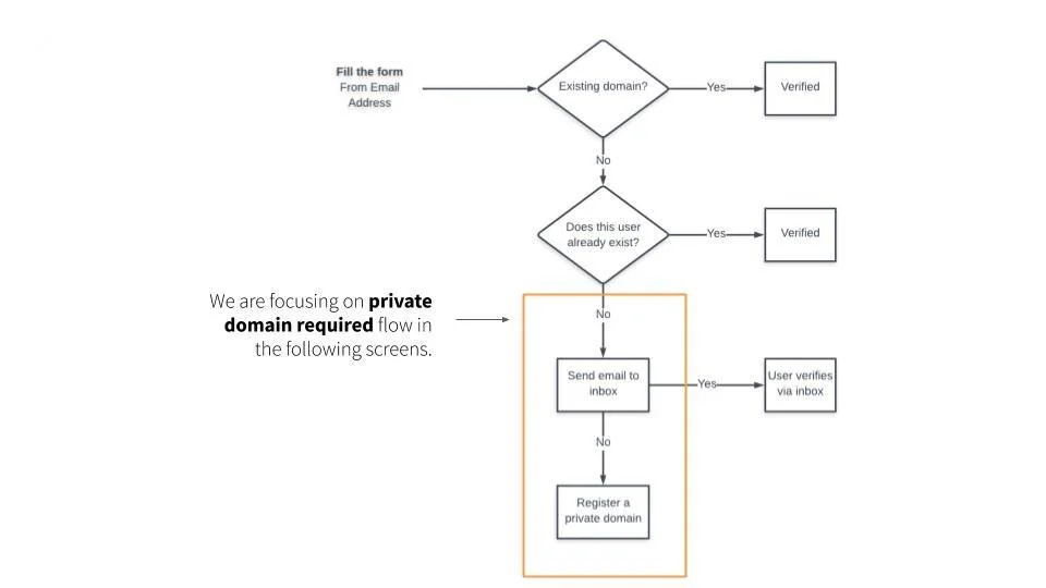 The process flow gave stakeholders insight into where the user would be interacting with the system and how the emails were being routed in the form.